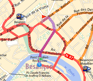 Streckenlänge: 89 km Fahrzeit: 6h22 Genaue Routenbeschreibung im Forum. Übernachtung: La Plage de Besançon-Chalezeule 0,9 km vom Stadtzentrum.